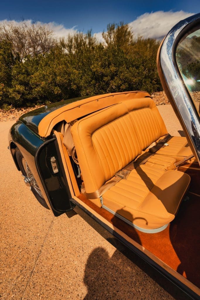 The XK150 Roadster was powered by a 3.4-liter inline-six engine that produced 190 horsepower and could reach a top speed of 120 miles per hour. It was also equipped with a four-speed manual transmission and disc brakes, which were a major improvement over the previous XK140 model.